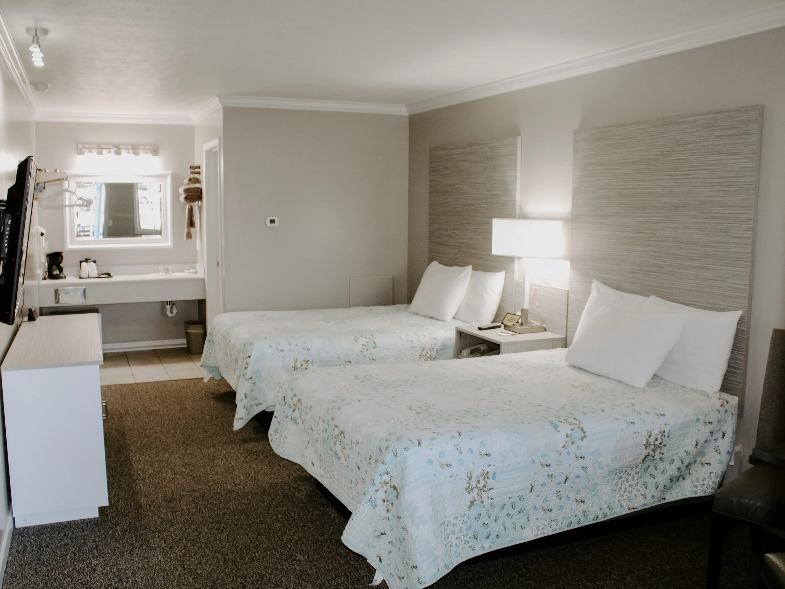 Guests enjoy catching the latest news or their favorite shows on our new flat screen cable TVs. Air conditioning is provided in each room so you can adjust the temperature to your liking. A coffee maker, microwave, and mini refrigerator are provided in every room, along with fresh towels, complimentary toiletries and daily room cleaning service. We also provide free wireless internet and a continental breakfast.
